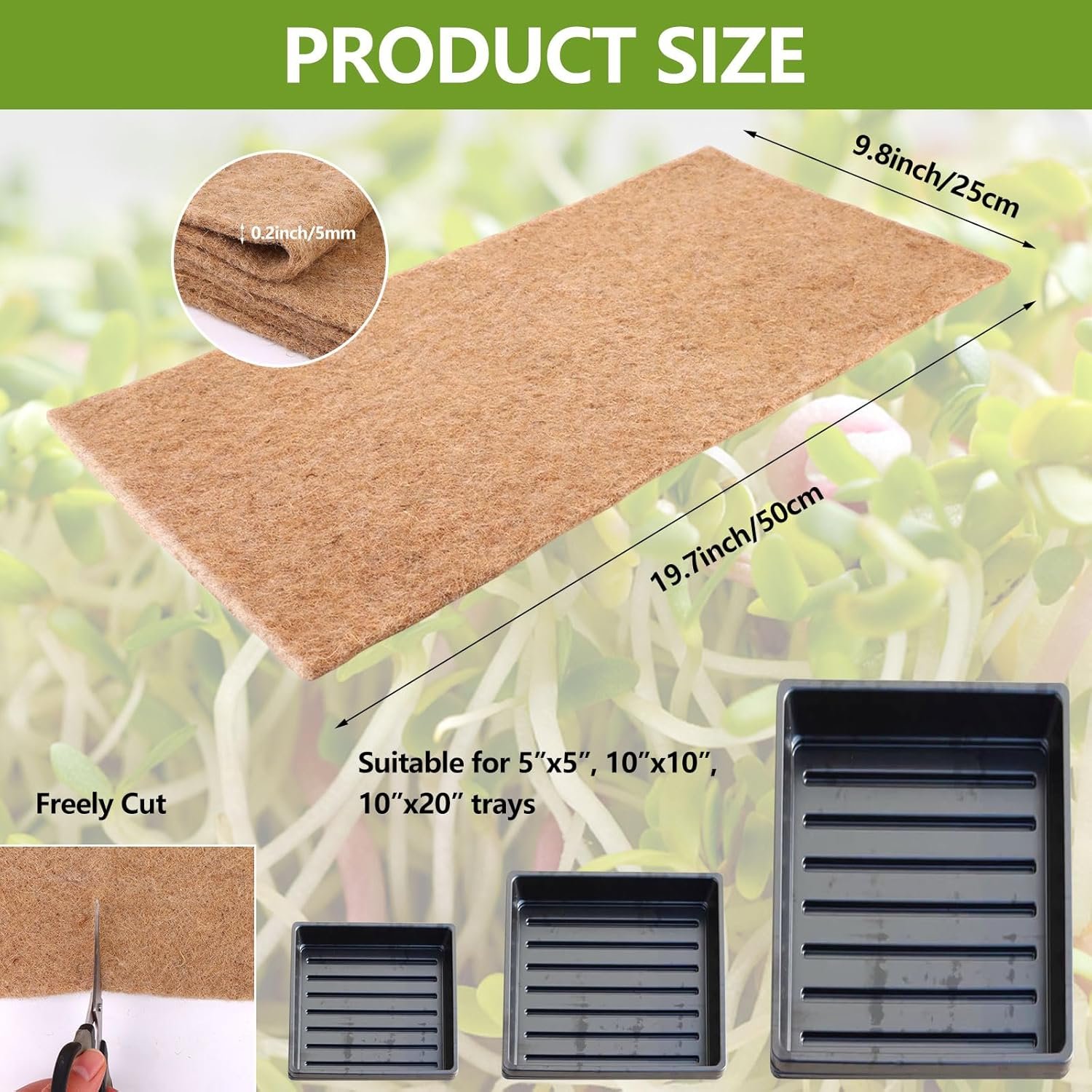 HIGHLY ABSORBENT: Hemp mats for growing microgreens are dense enough and highly absorbent to provide the water needed for seeds to germinate and promote healthy plant growth, easy to use, just use scissors to cut to the size you need.