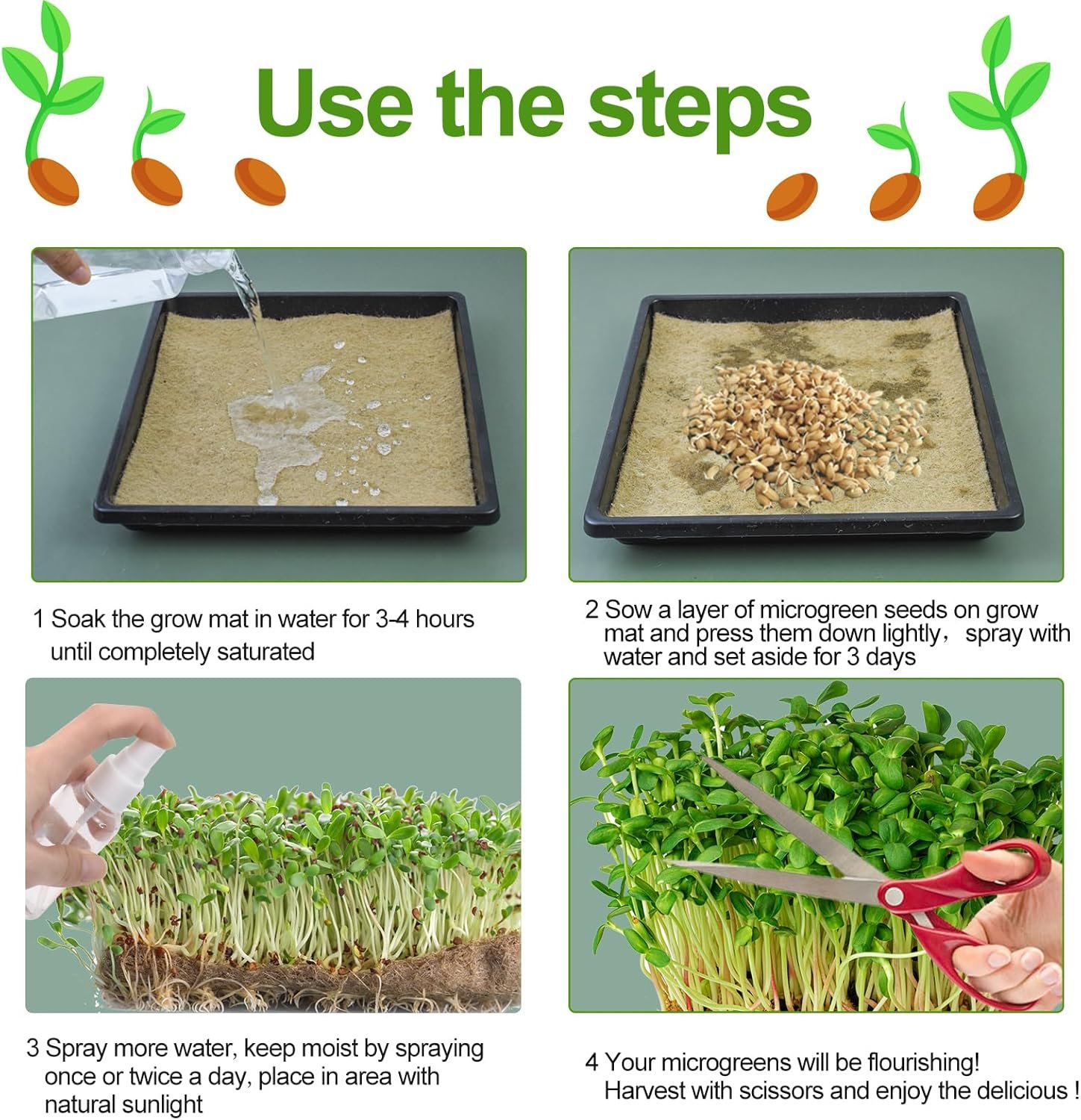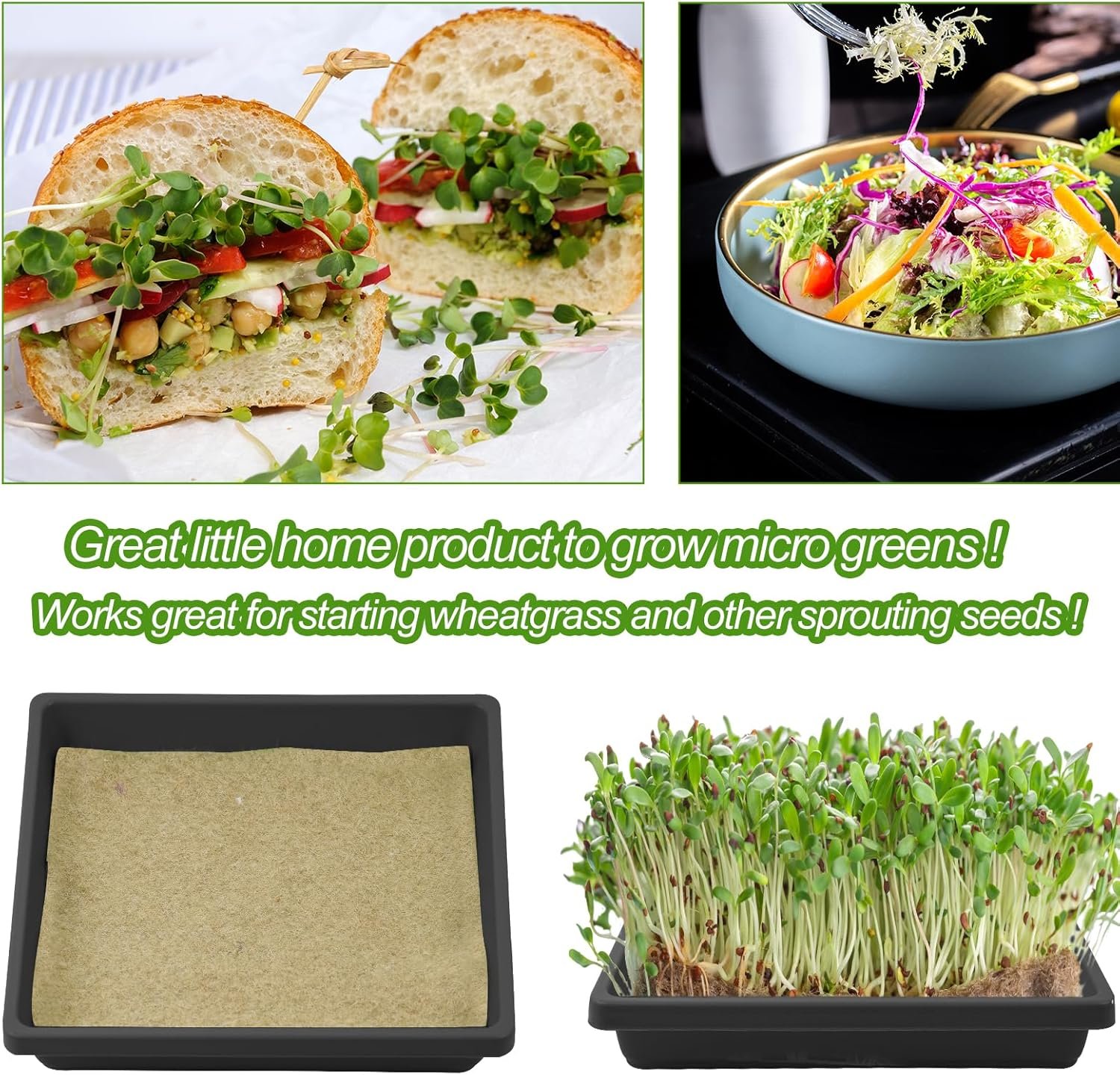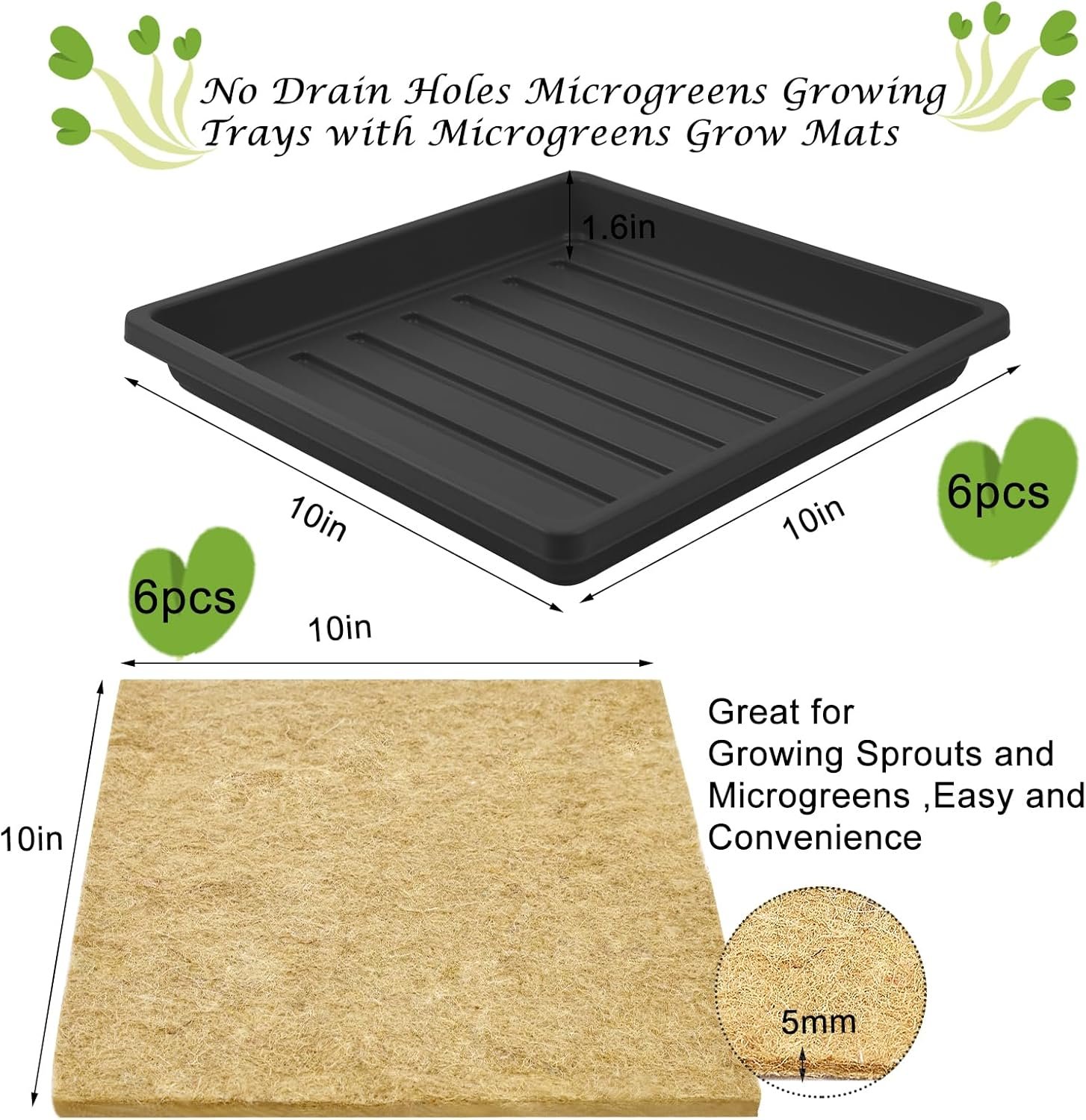 Microgreen Growing Kit: You will receive 6pcs 10″ × 10″ microgreens hemp mats and 6pcs black microgreen tray without drain hole, making it easy to grow organic microgreens indoors without additional tools.