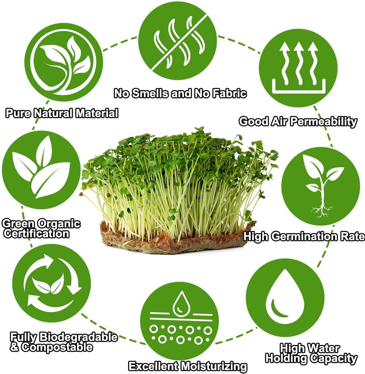 Durable Material: Microgreens mat is made of pure natural organic hemp fibers, free of adhesives and other chemicals, and has good breathability; The BPA free microgreens tray is made of high-quality plastic, which is harmless to seedlings and can be reused.