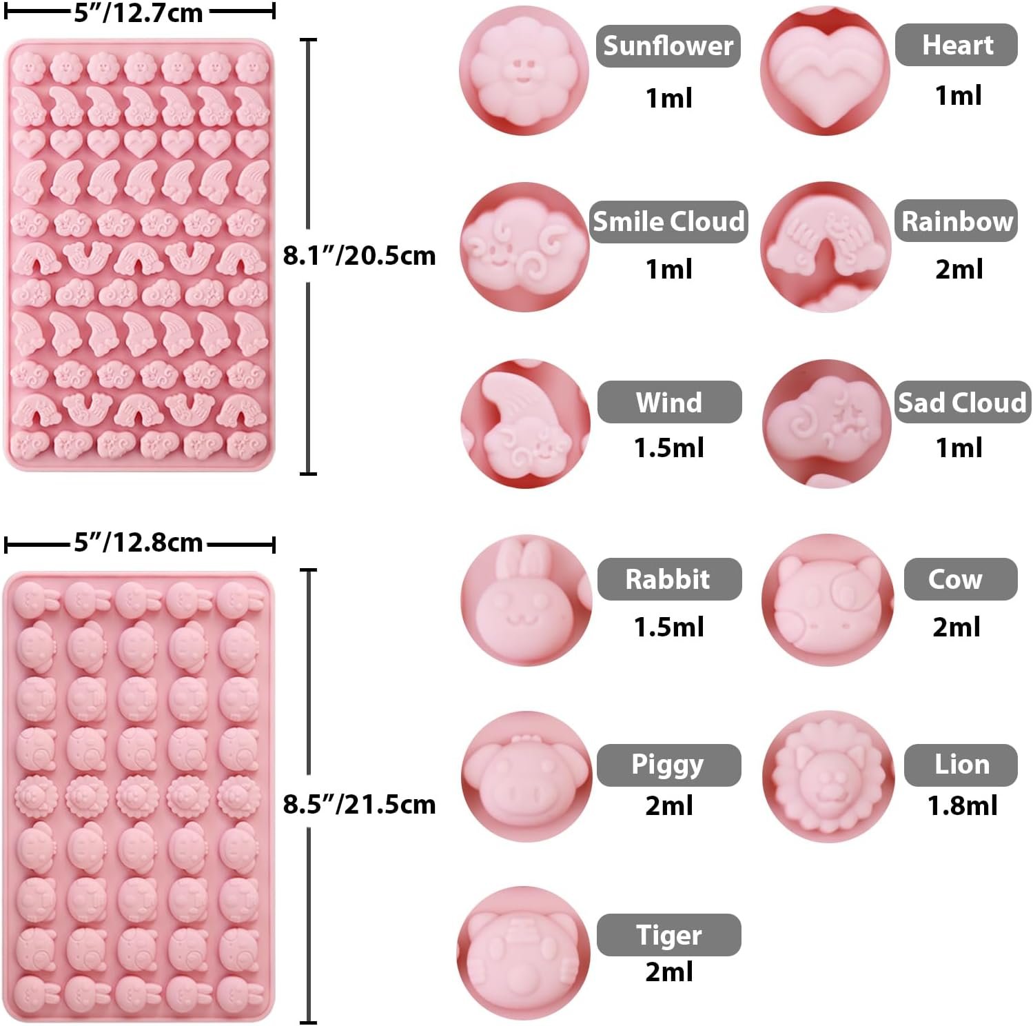 Adorable & Proper Size- our gummy candy molds measures 8.5” x 5”. The height is 0.5 inch for 0.5-3 ml depending on the animal shape. Kids will love it when it pop out with good detail shape.