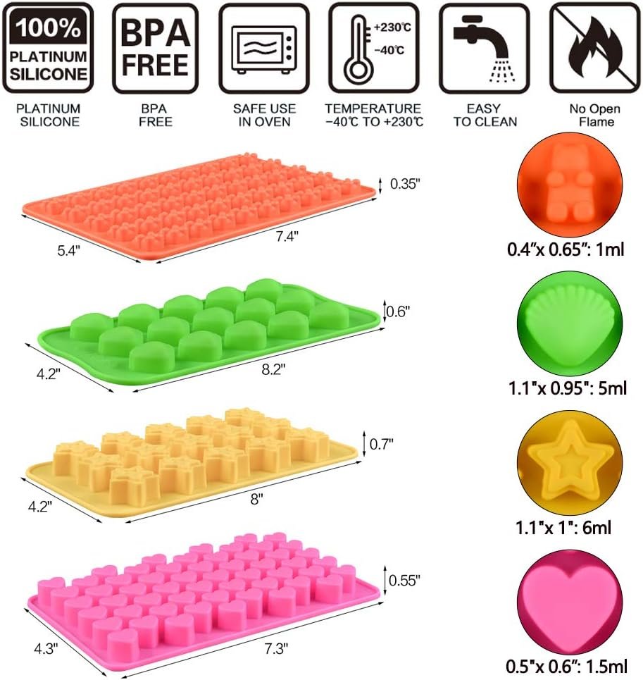 Enjoy A Full Value Set: Making 50 bear gummies, 15 stars, shells and 55 small hearts at a time. Candy, gummies, chocolates, mints, fudge, small cakes, jell-o, ice cubes, crayon melts and all you could creative