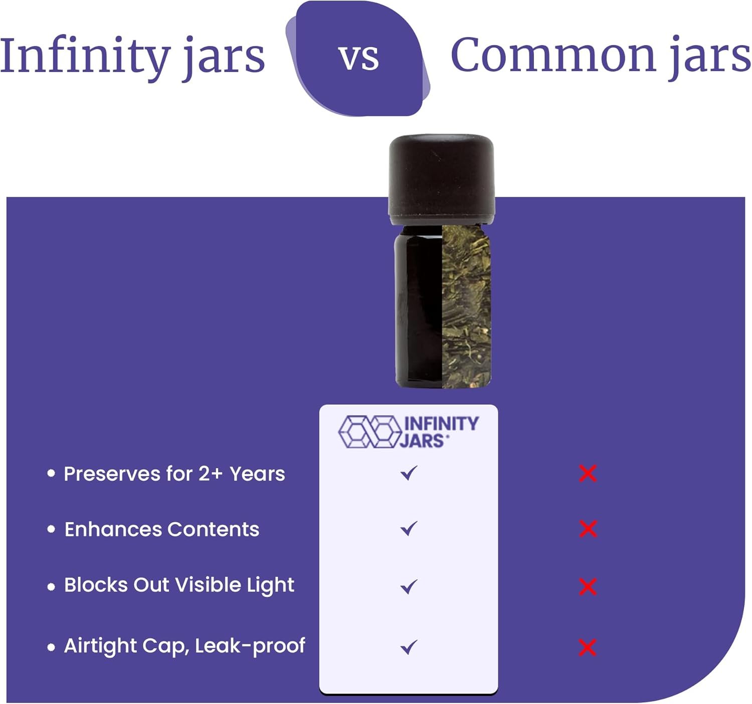 𝗖𝘂𝘀𝘁𝗼𝗺𝗲𝗿 𝗦𝘂𝗽𝗽𝗼𝗿𝘁 & 𝗣𝗿𝗼𝗱𝘂𝗰𝘁 𝗱𝗶𝗺𝗲𝗻𝘀𝗶𝗼𝗻𝘀 : Infinity Jars is a company that cares about our clients! We want you to have an outstanding experience buying from us. If for any reason, you are not thrilled, please contact us so we can work with you.Products have Dimensions of Height: 2.64″/ Diameter of Bottle : .94″/ Diameter of Opening: 0.4″