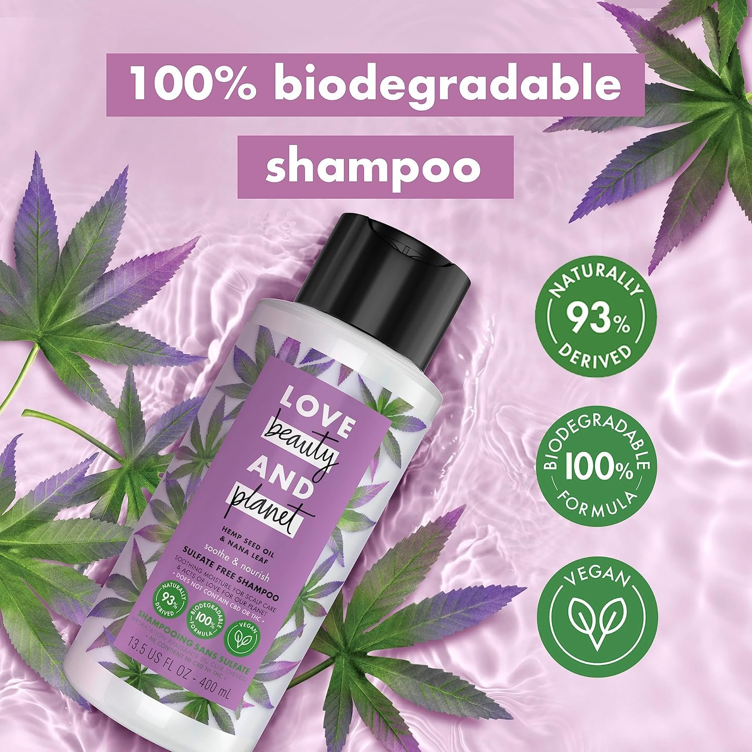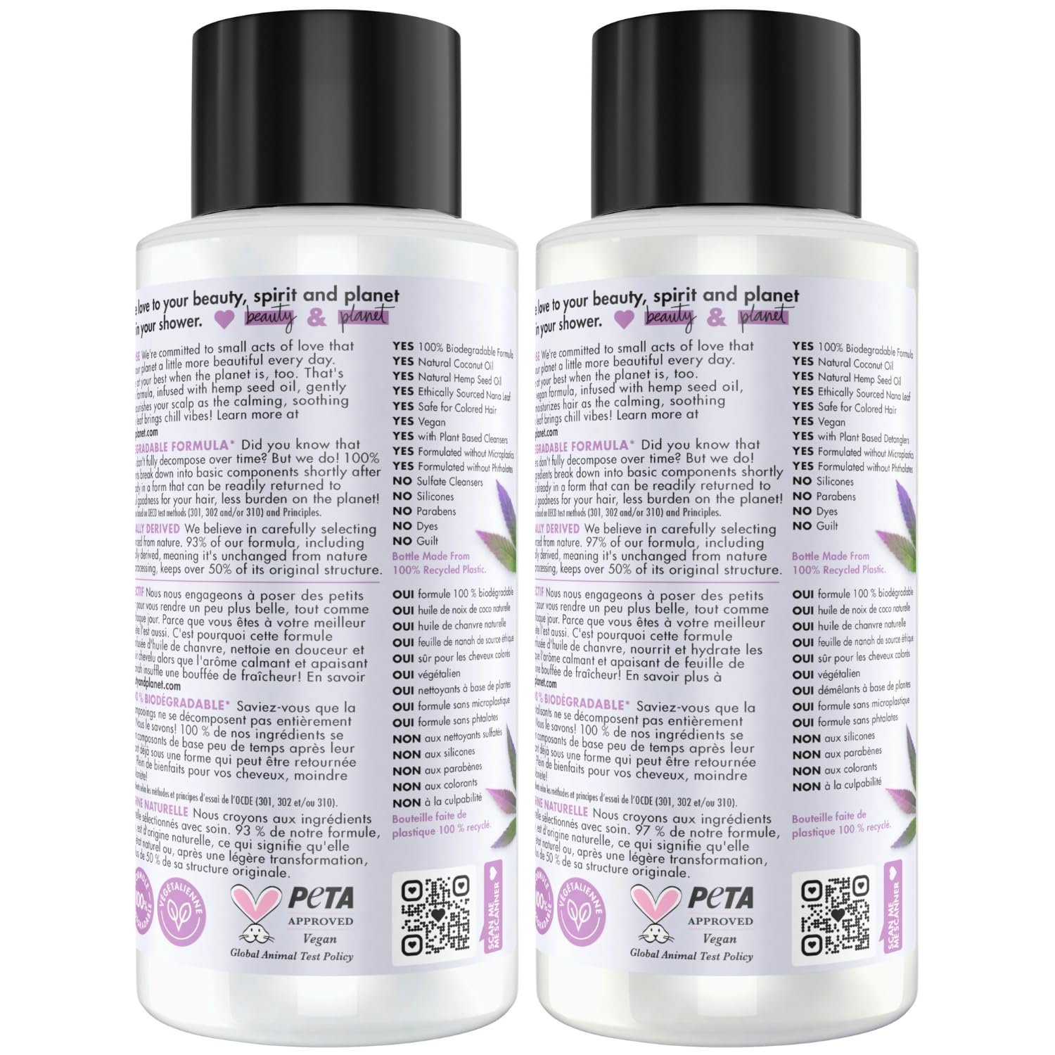 MOISTURIZING SHAMPOO AND CONDITIONER SET: Love Beauty and Planet Hemp Seed Oil & Nana Leaf Shampoo & Conditioner Set, infused with coconut oil, nourishes and moisturizes hair.
