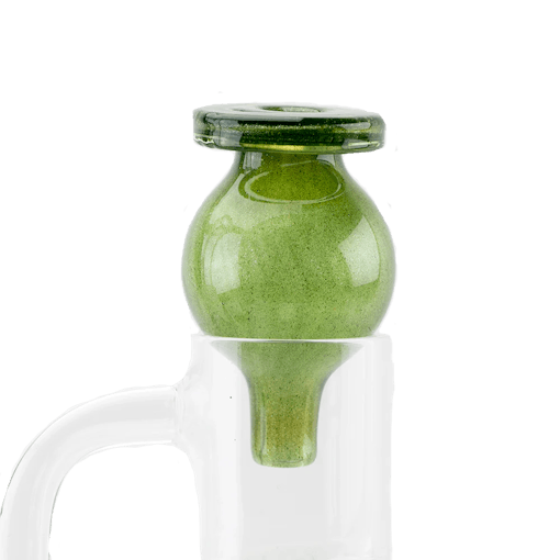 A bubble carb cap lets you manually control directional flow by moving the cap in a circular motion when placed on a flat top quartz banger, helping to smoothly vaporize the oil to get the most out of your dab. We love these stylish caps blown by Vigil Glass in Portland, Oregon, that are equal parts form and function. Our current favorite is the Mossy Sparkle colorway here, but peruse the whole Vigil Glass collection to find the cap that speaks to you.