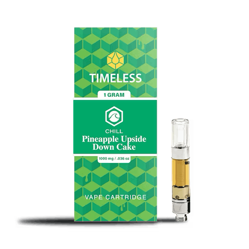 Our favorite cart for 710 this year comes from Timeless Vapes, with their solvent-free, cannabinoid-rich oil, testing consistently at 85+/-% THC for a potent, powerful experience. Get a slice of the good life with Pineapple Upside Down Cake, a relaxing but upbeat hit with hints of vanilla, caramel, and cake.